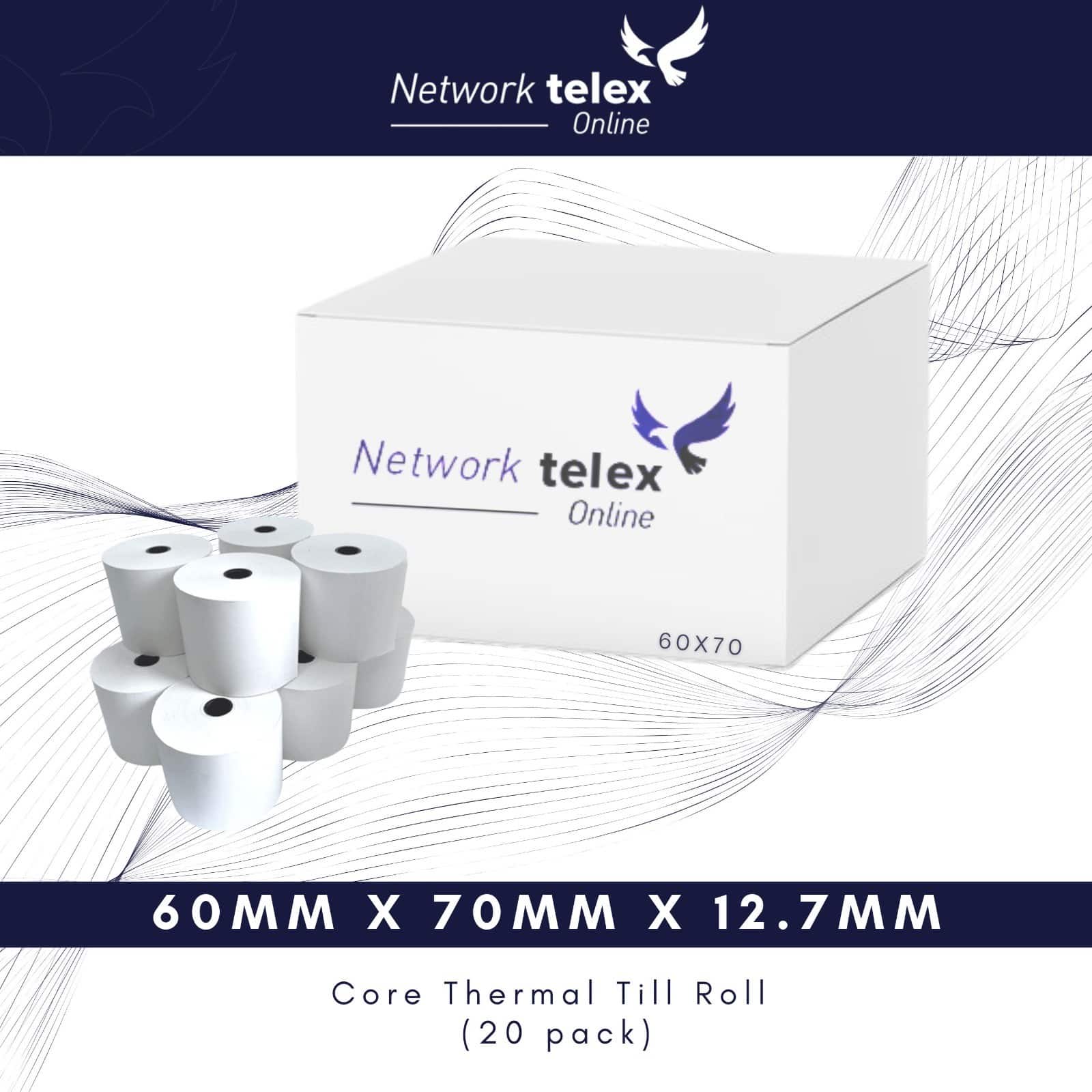 60mm x 70mm x 12.7mm Core Thermal Till Roll (20 pack)